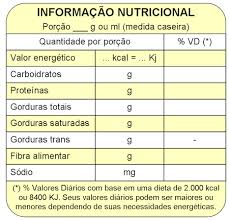 A tabela com informações nutricionais, presente nos rótulos e obrigatória por lei, deve declarar a quantidade de valor energético dos nutrientes: carboidratos, proteínas, gorduras totais, gorduras trans, fibra alimentar e sódio. Optativamente podem ser declarados vitaminas e minerais, quando estiverem presentes em quantidade igual ou maior que 5% da Ingestão Diária Recomendada (IDR) por porção indicada no rótulo, outros nutrientes e cálculo do valor energético e de nutrientes.